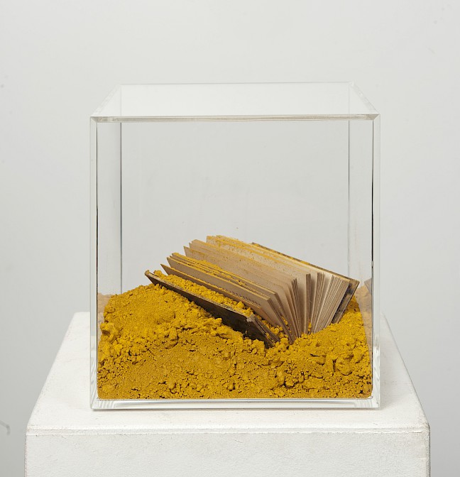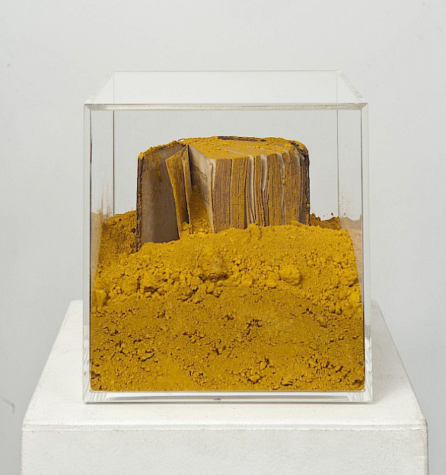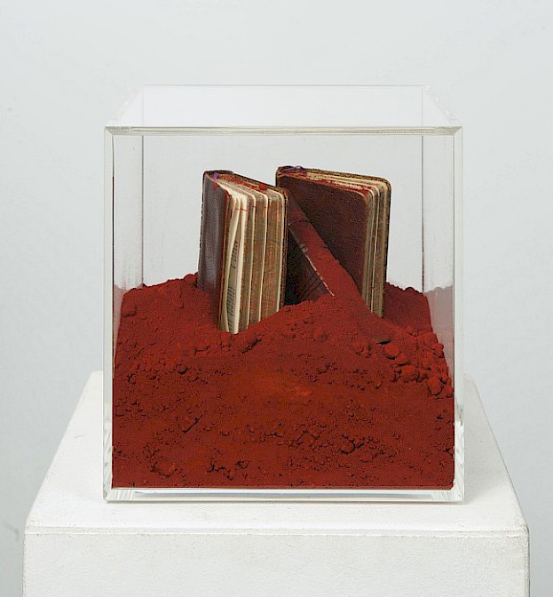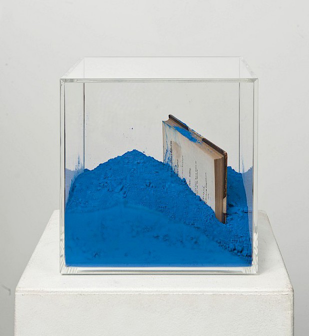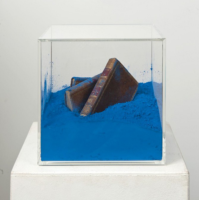 Material: Plexiglas, Farbpigmente, Bücher