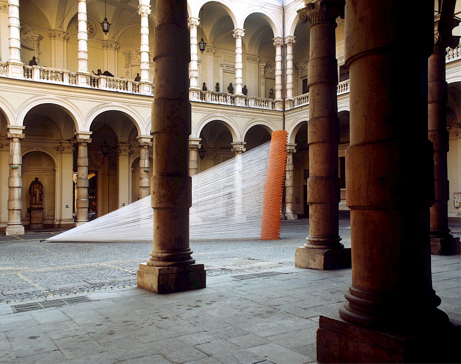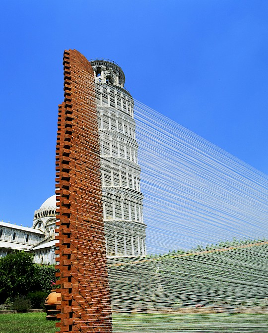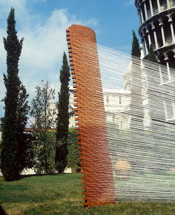 Material: hand-moulded bricks, nylon cords, screw eyes, ring anchoring in the ground,