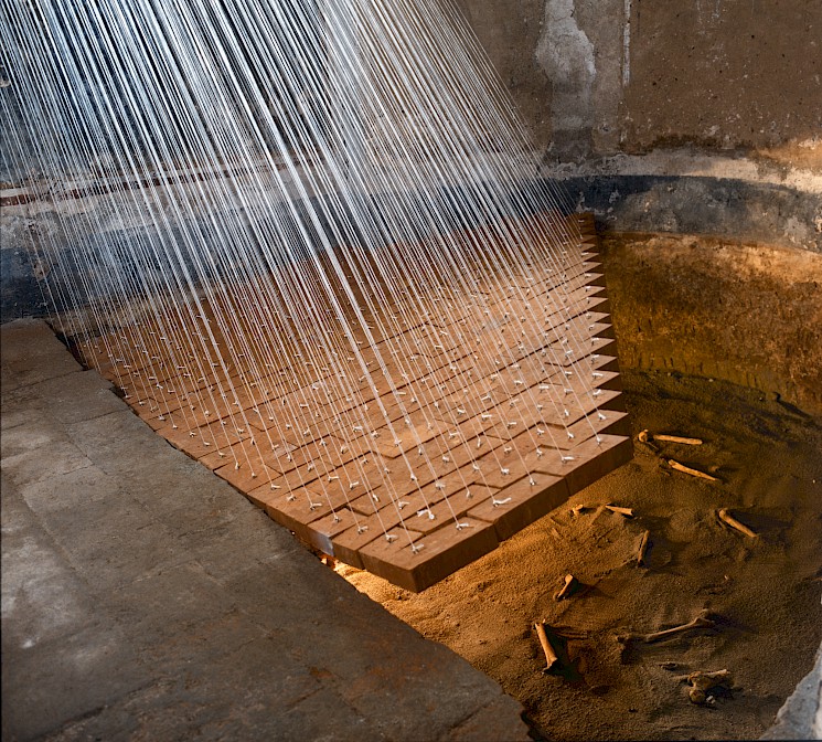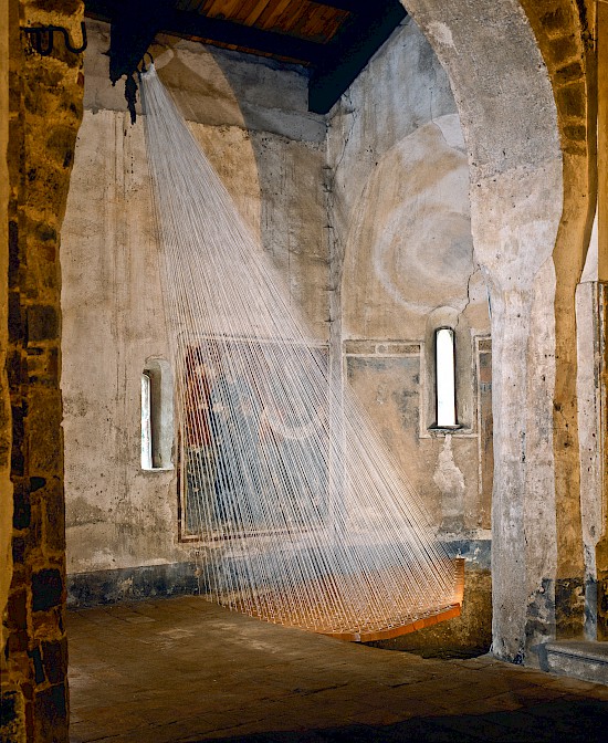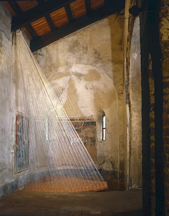 Location: S. Maria del Monastero, La Manta - Italy Material: bricks, nylon cords, screw eyes, dowels, anchoring ring Dimensions: 3 m x 3 m - height: 7 m