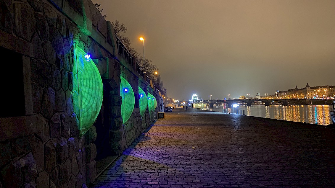 Hořejší nábřeží (upper embankment) ist ein Ort am Fluss, der auf wunderbare Weise das Vergehen/das Fließen der Zeit darstellt. Ebenso wie den Versuch des Menschen, den Fluß einzugrenzen, sich den Fluß unterzuordnen, und diesen für seine Zwecke zu nutzen. Der Fluß als Gefahr bei Hochwasser, als lebensnotwendiges Element. Der Fluß als Grenze, als Schutz, aber auch als Hindernis. Der Fluß als Möglichkeit für den Transport usw.